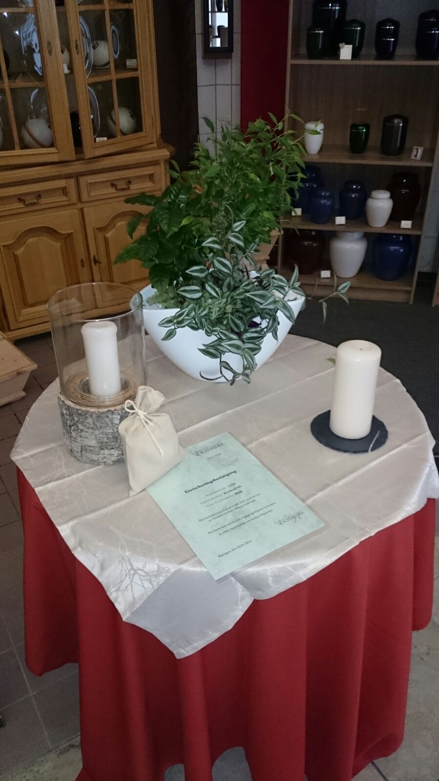 Hier sehen Sie unseren Schau- und Beratungsraum in dem auch Urnen und Tiersärge erworben werden können.